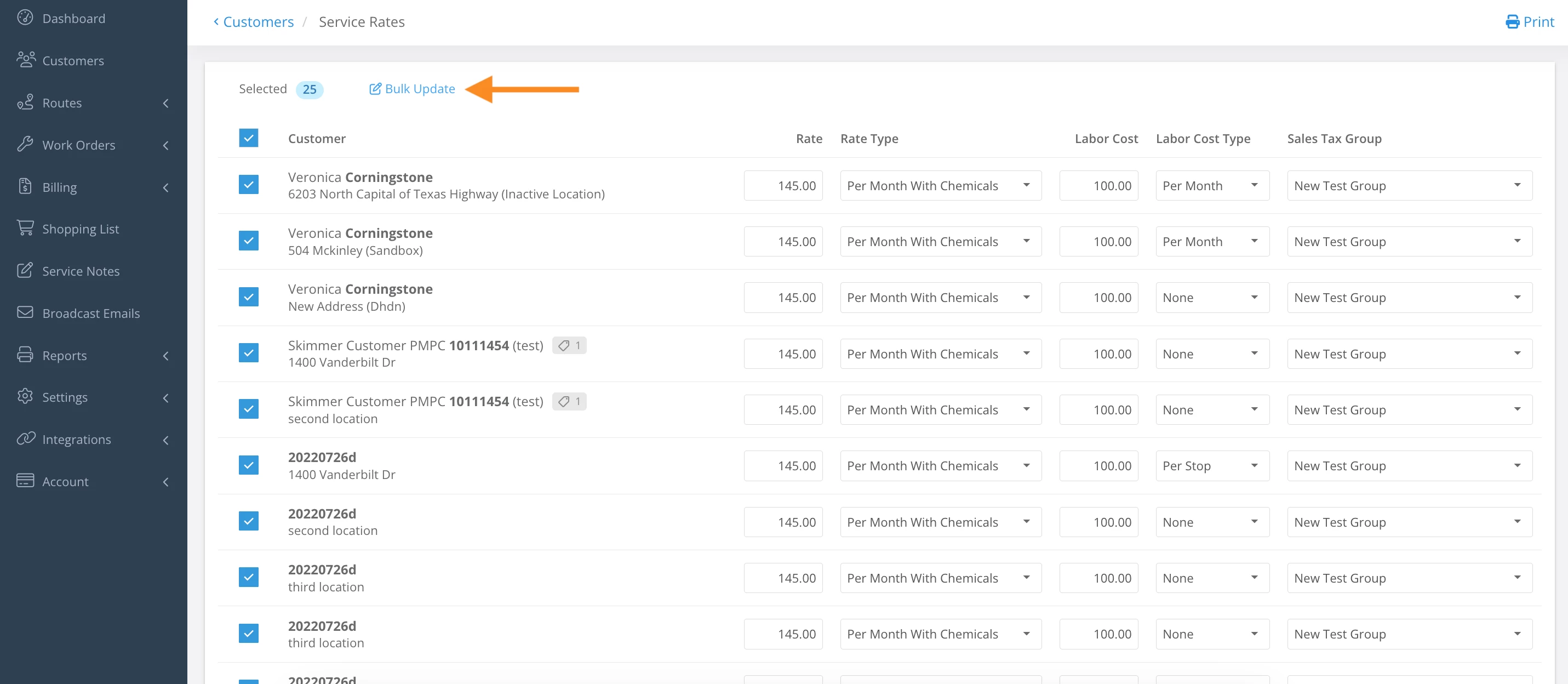 Before You Start: Bulk Update actions apply to all customers per page. You can view up to 100 customers per page.