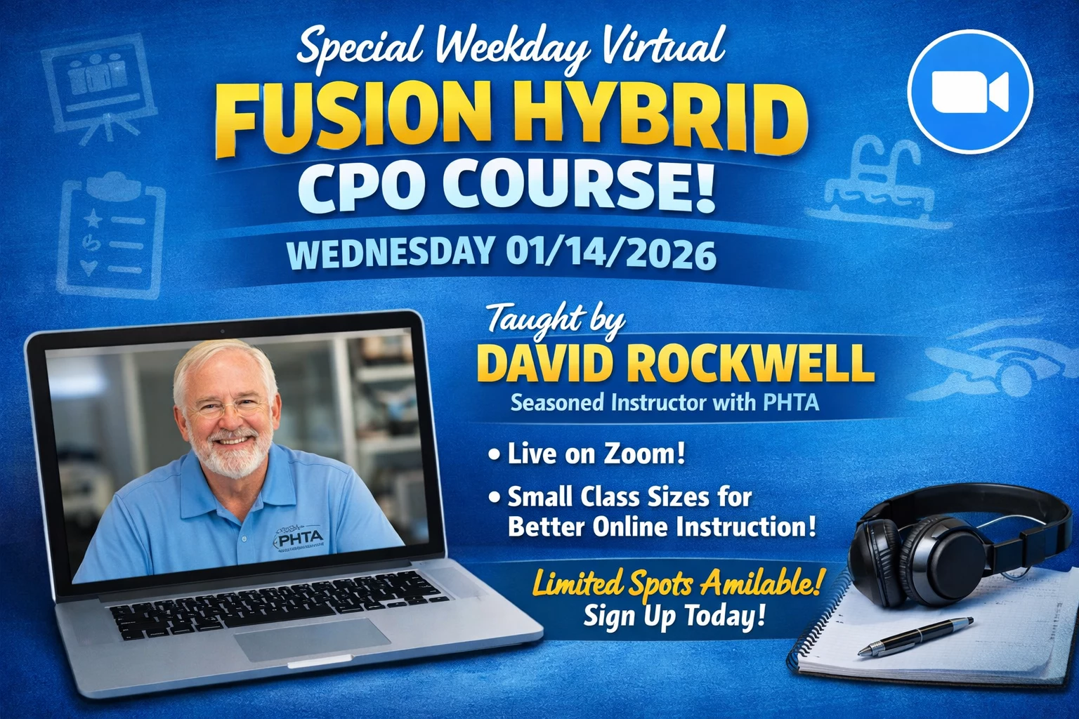 Join David Rockwell, seasoned PHTA instructor, for a weekday Fusion Hybrid Certified Pool Operator® (CPO®) course designed for busy pool professionals.
