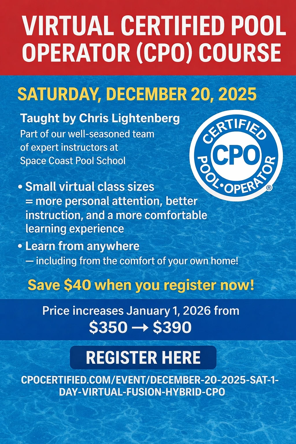 π¨ Virtual Certified Pool Operator (CPO) Course β December 20, 2025! π¨