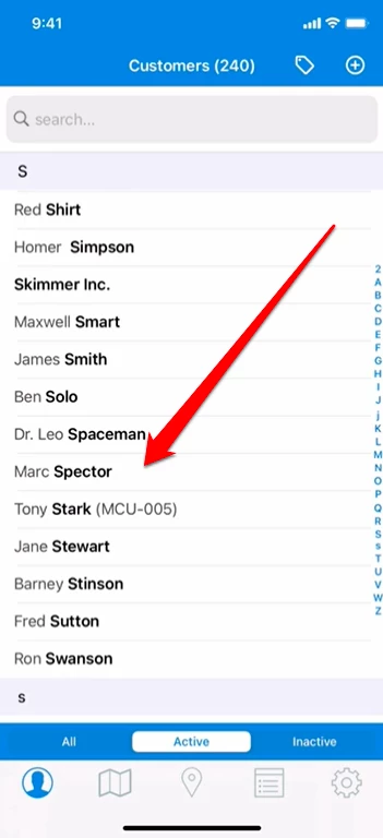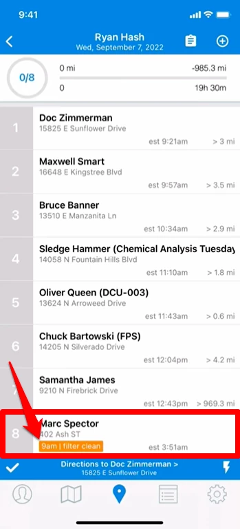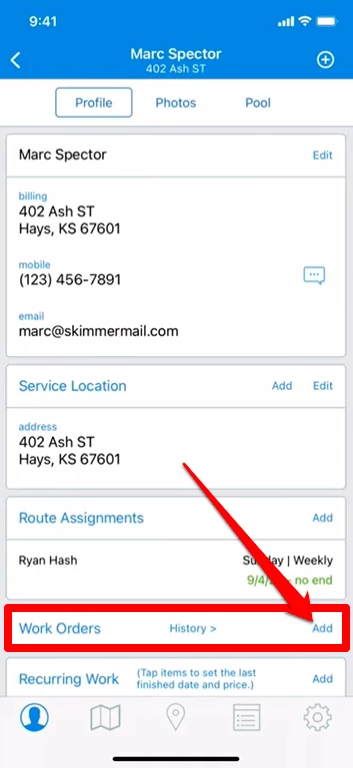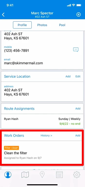- There’s more than one way to add a scheduled time to work orders on the Skimmer app. In another video, we show you how techs can do this from their route dashboard, and that method is also available to admins. For this tutorial though, we are going to focus on a method that is reserved for admins only. We’ll start on the Customers tab, which techs are not able to access on the app. This gives you access to all your customers and their information. On this tab, find your customer and tap on their name.