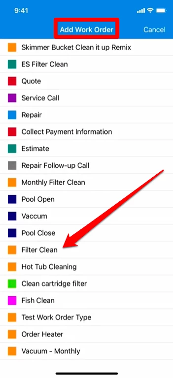 - Once you’re on their profile, scroll down until you see the Work Orders box. There isn’t a work order here yet, so we’re going to tap Add. Then we’ll choose our work order type. On the next screen, we’ll assign it to a tech and a day and then give it a time. There are other things we can do with the work order, of course, but for this tutorial we are focused on the Scheduled Time box. Note that it says “optional.” That’s because scheduled times are not required to create and assign a work order. But if you want to indicate a time, the option is here for you.