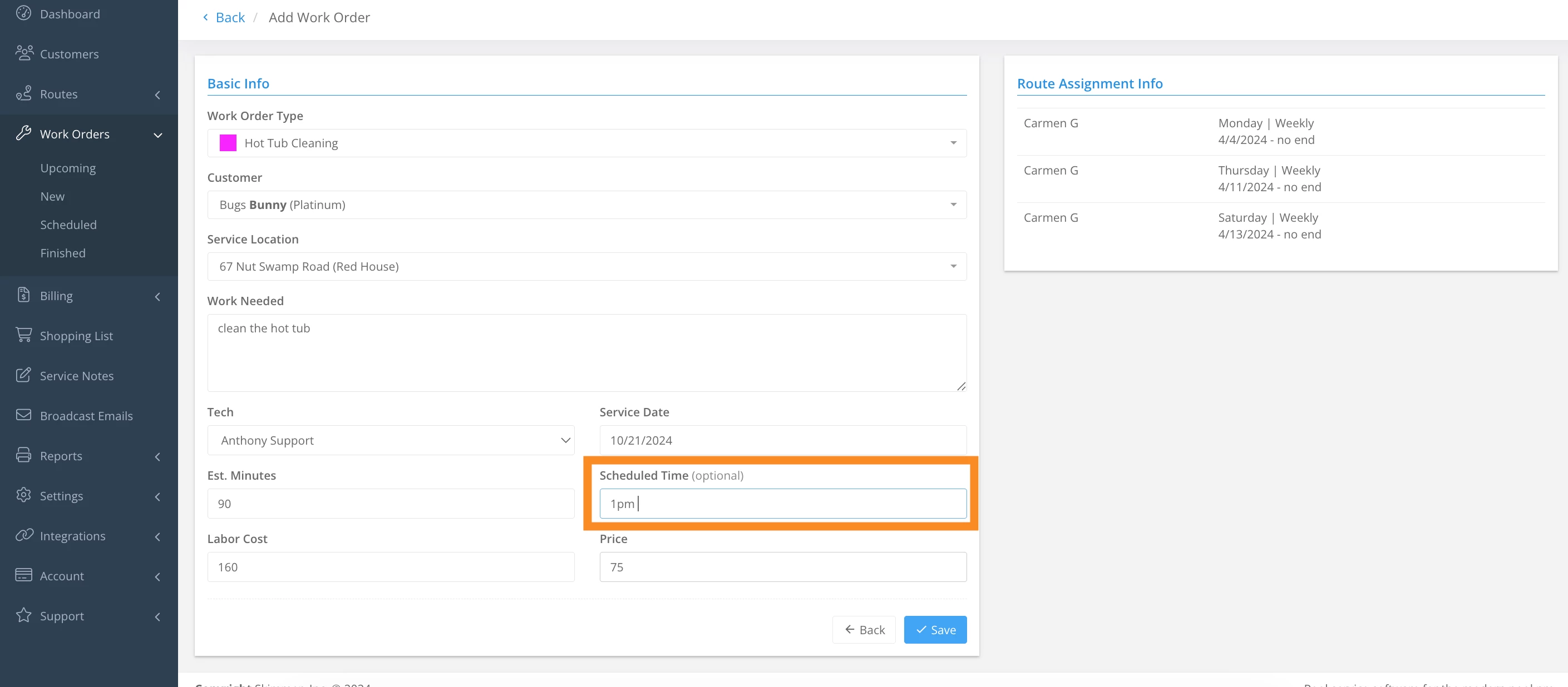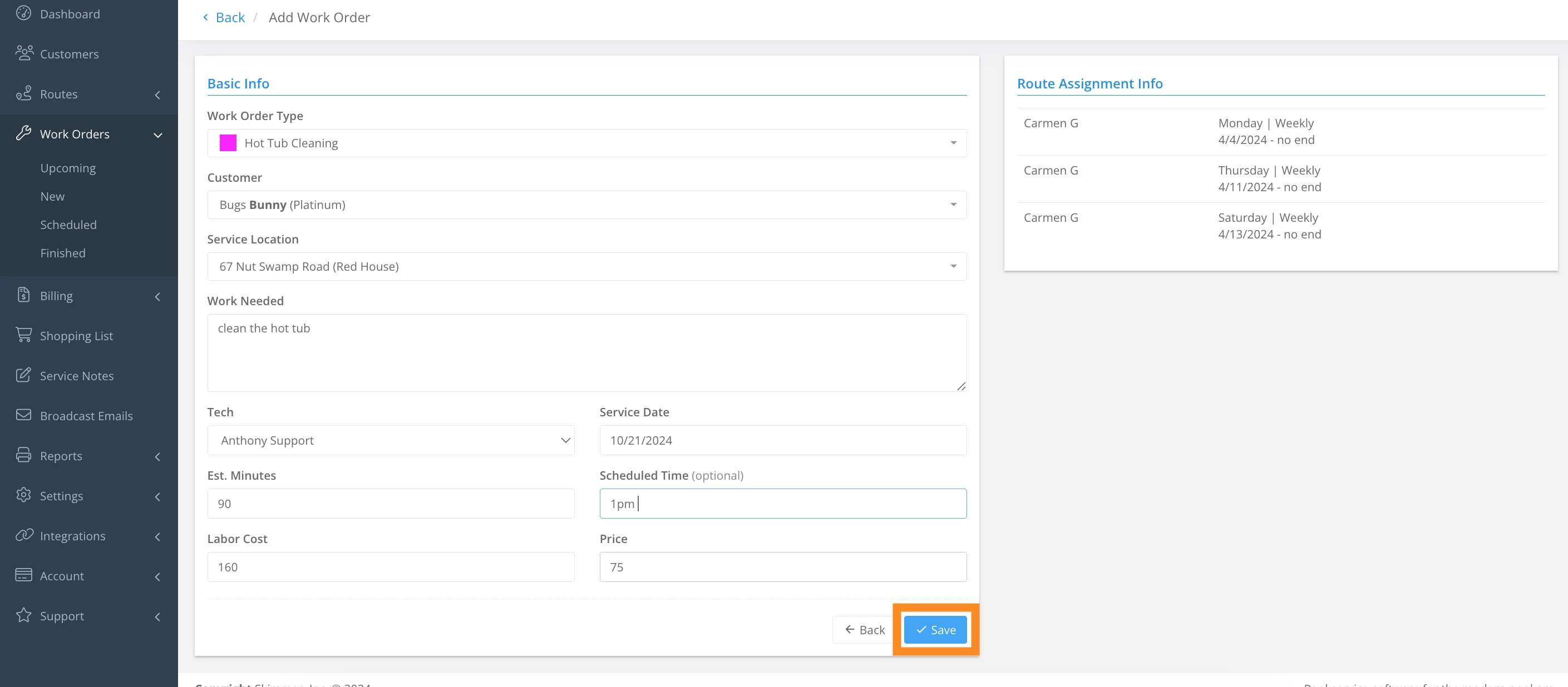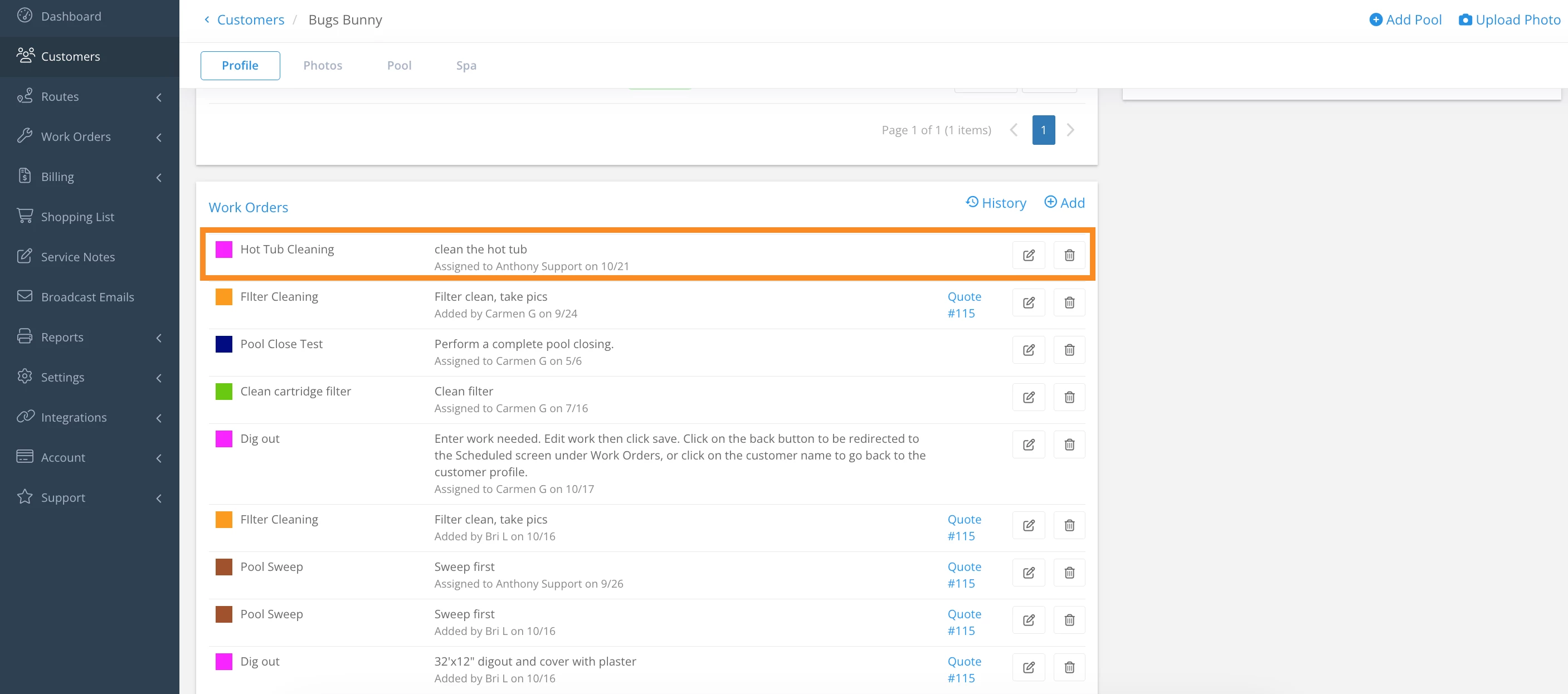 2. Scroll down to Work Orders, and click Add to create a new work order.