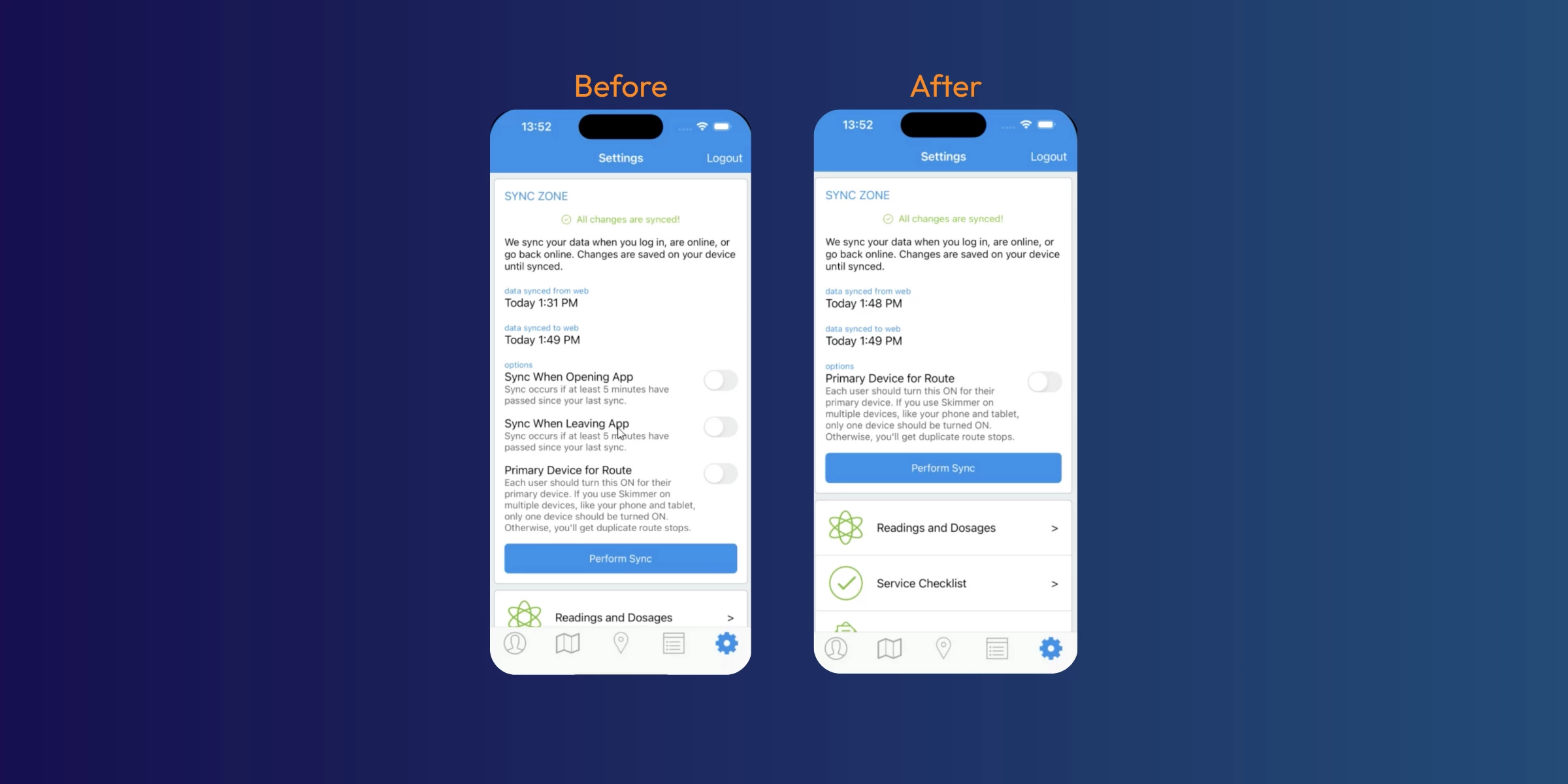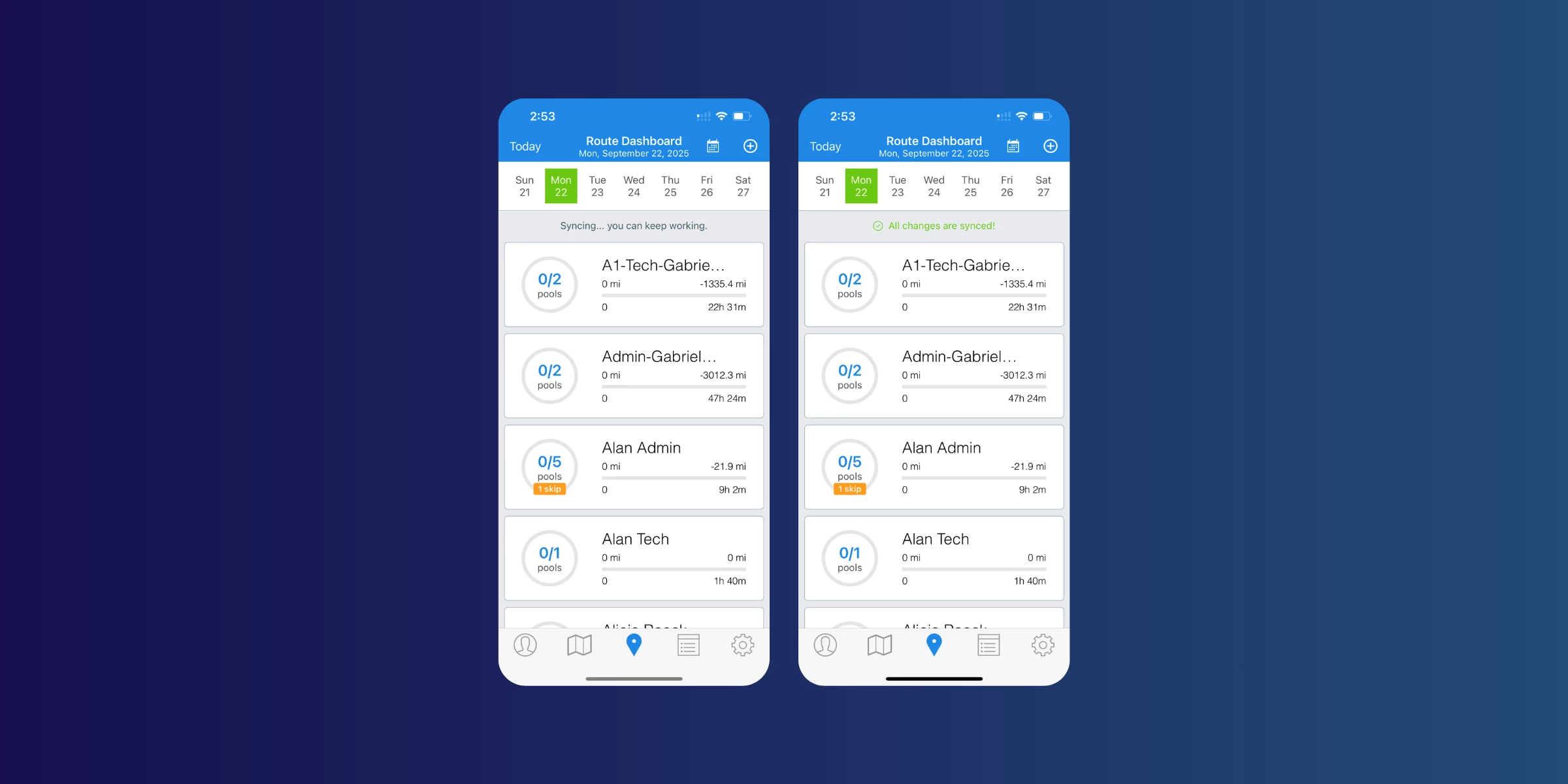 Sync from the route dashboard — you can now refresh your data right where you work with a quick tap or pull-to-refresh