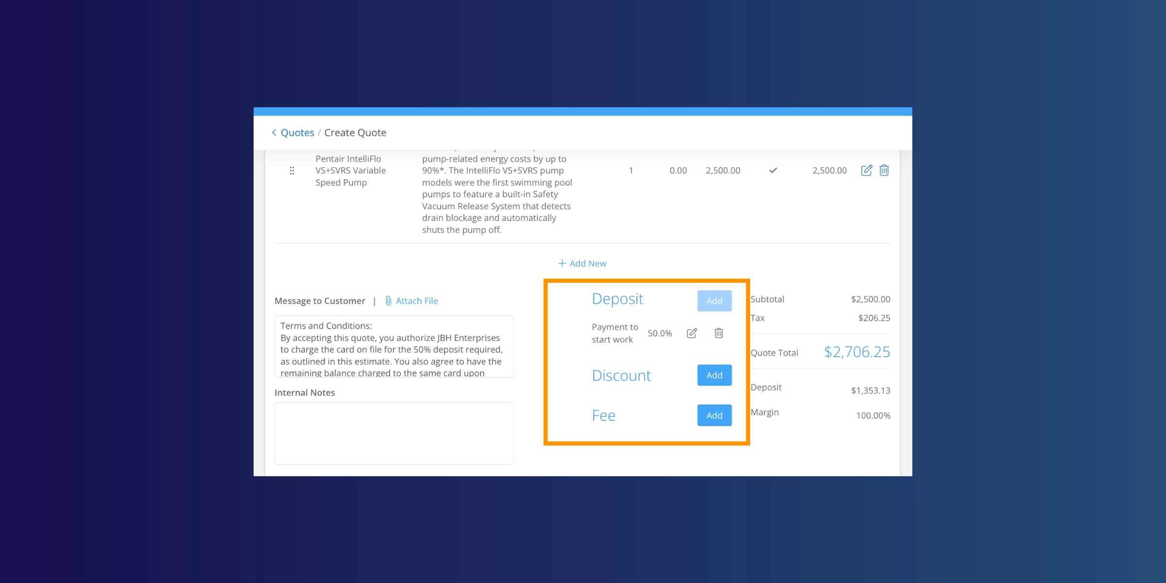 - Lock in commitment by adding deposit requirements to quotes before sending