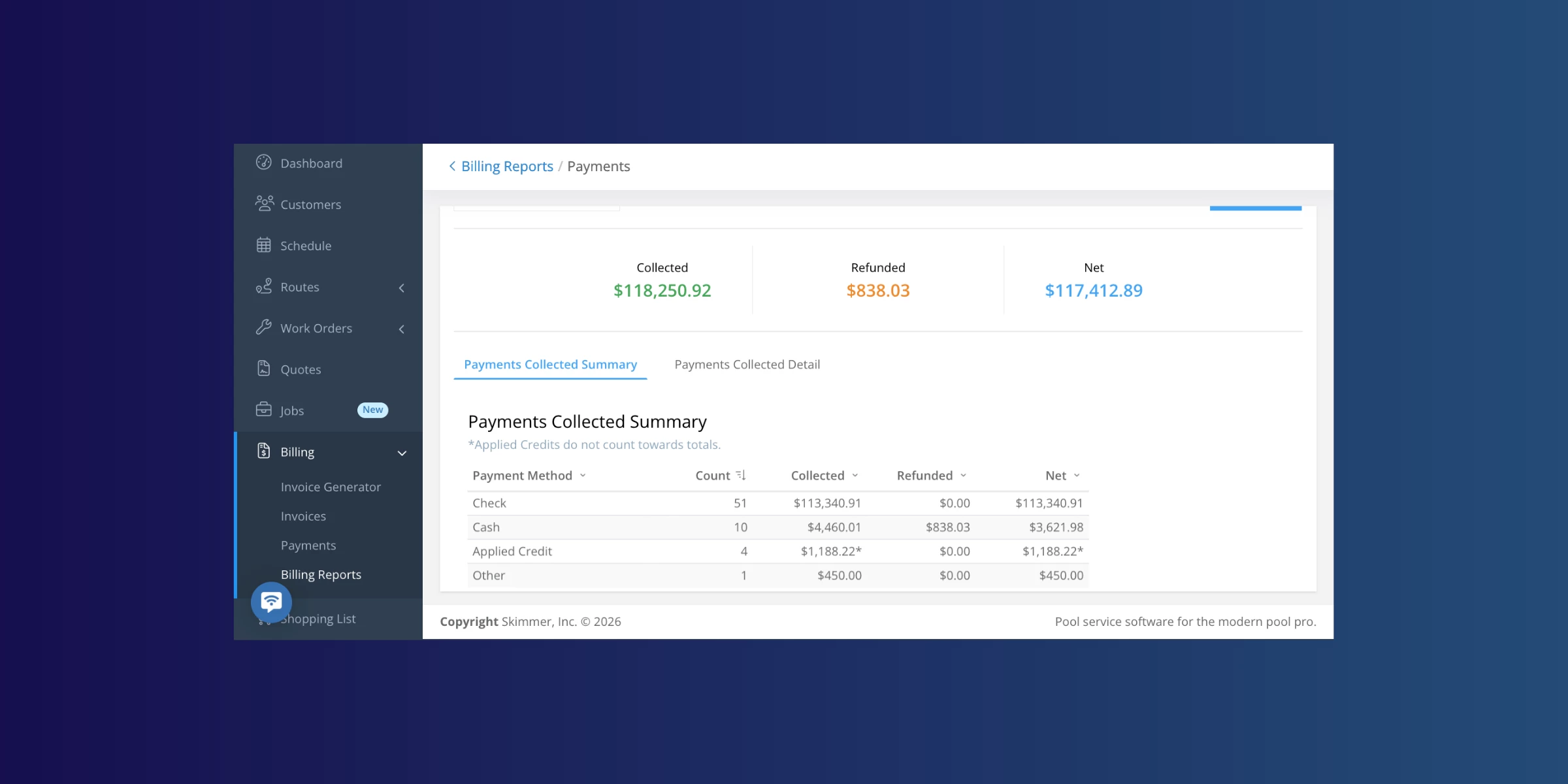 - The new payments collected report now combines the old payments collected summary and detail reports into a single, clean, easy-to-use view. You can quickly see totals collected, refunded, and net, then jump into detailed payment-level data with better filters for customers, payment types, refunds, and methods.