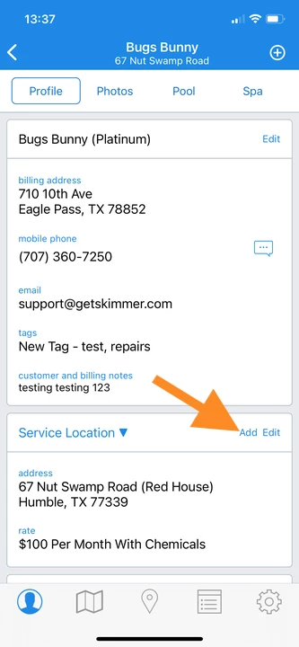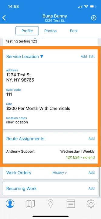 8. Service Location and Route Assignment will be visible on the Profile tab.