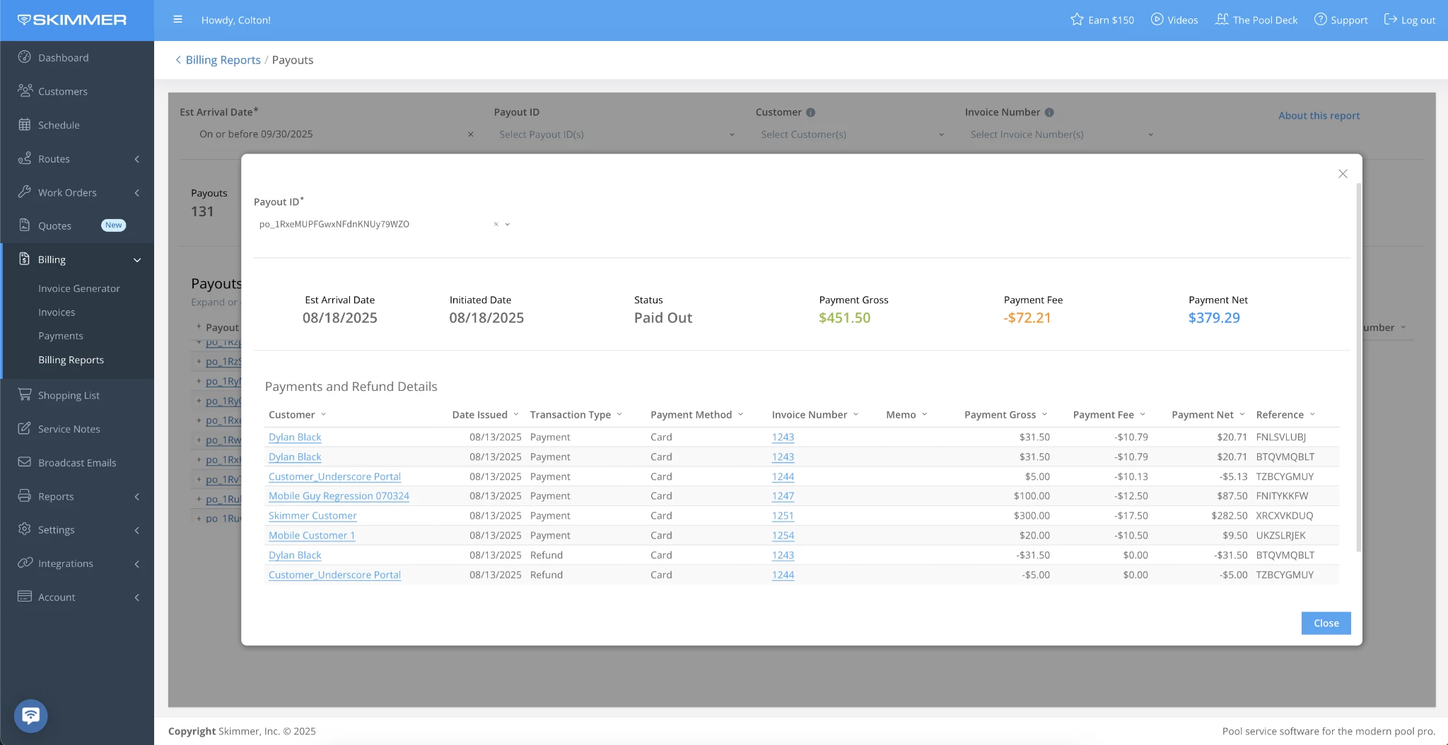- Alternatively, click a Payout ID directly to open a window that shows only the payments and refunds for that specific payout.